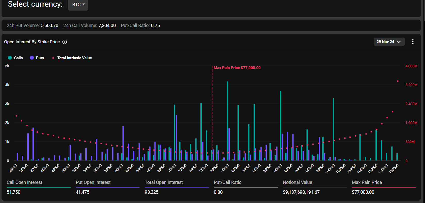 اس کے علاوہ، نومبر 29 کو $10 بلین سے زیادہ مالیت کے کرپٹو آپشنز کی میعاد ختم ہو رہی ہے۔ یہ حالیہ مہینوں میں سب سے بڑی میعاد ختم ہونے والی مقداروں میں سے ایک ہے اور بٹ کوائن (Bitcoin) اور ایتھیریم (Ethereum) کی قیمتوں پر نمایاں اثر ڈال سکتی ہے۔