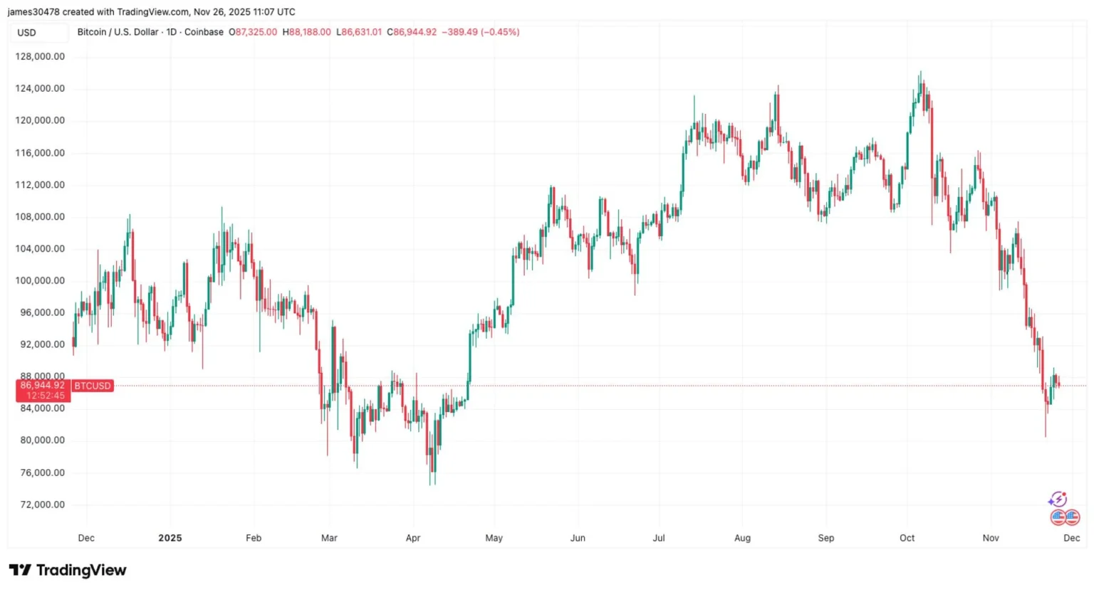 Bitcoin’s Thanksgiving level looks set to trail 2024, echoing prior cooldown years.