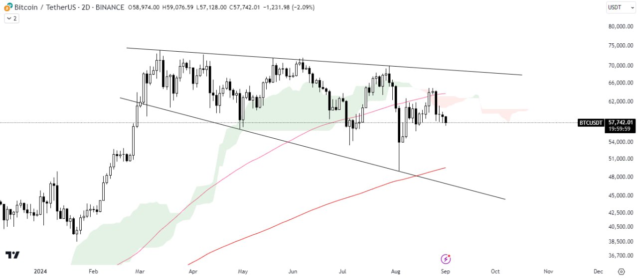 Bitcoin is currently encountering resistance from both the 100-day moving average and the Ichimoku Cloud, which are positioned above the current price action.