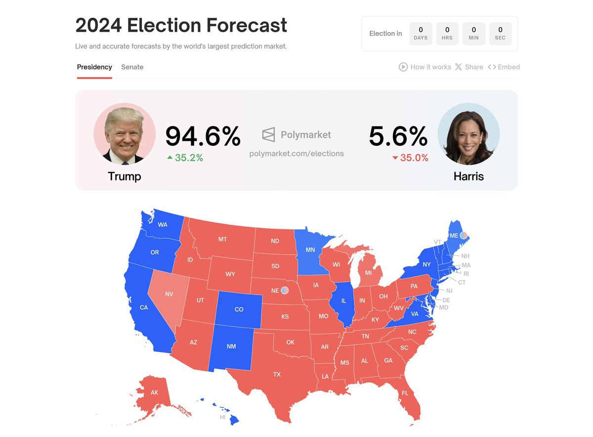 JUST IN: 🇺🇸 Donald Trump’s election odds surges to 94.6% on Polymarket.