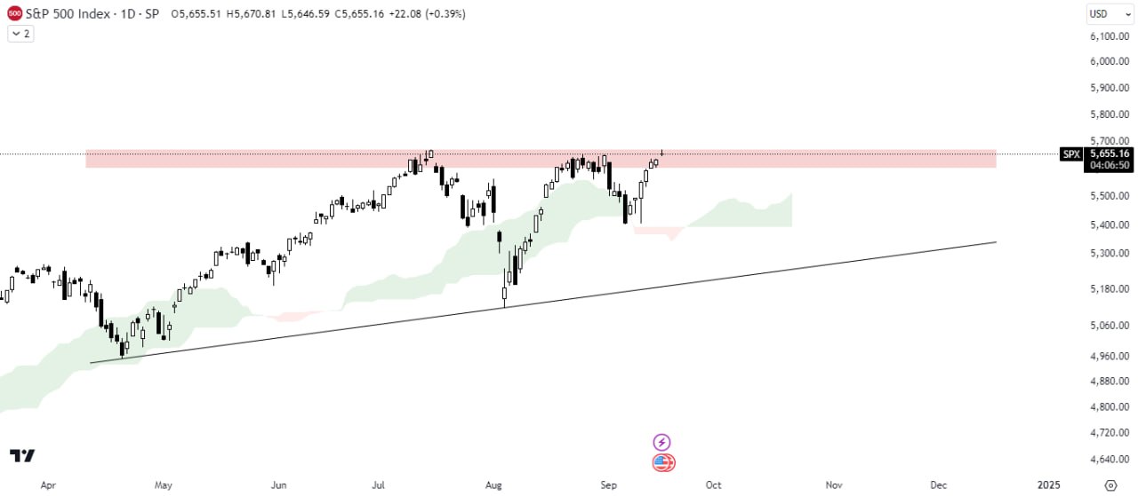 The S&P 500 is currently trading within the horizontal supply zone of an ascending triangle pattern, with the Ichimoku Cloud signaling bullish momentum. A breakout from this pattern, especially with strong volume, could lead to a robust bullish rally. This confluence of technical indicators reflects strong market sentiment, indicating potential for continued gains.nnForwarded from: The Crypto ExpressnnForwarded from Telegram. NFA! DYOR!