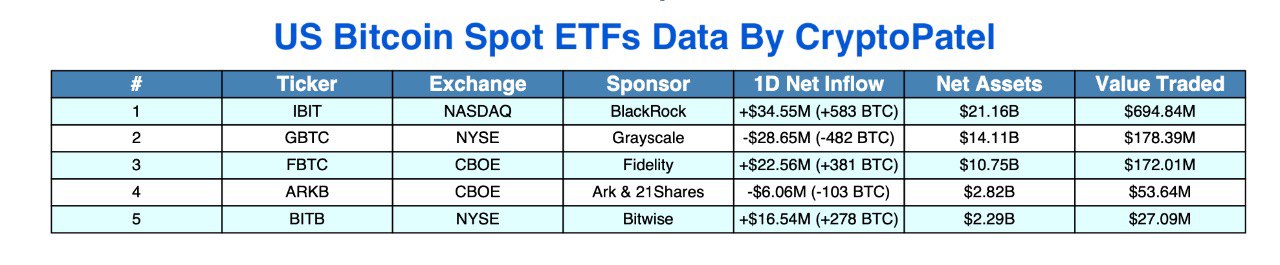 US #BitcoinETFs Bought +657 BTC (~$39M) yesterday (13-08-2024) 🚀