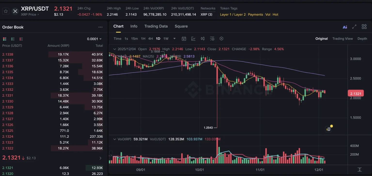 ایکس آر پی کی قیمت میں تقریباً 2 فیصد کمی، کرپٹو مارکیٹ کے عمومی رجحان سے کمزور کارکردگی